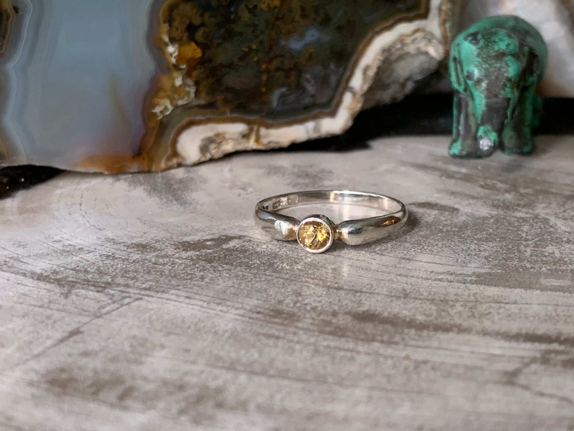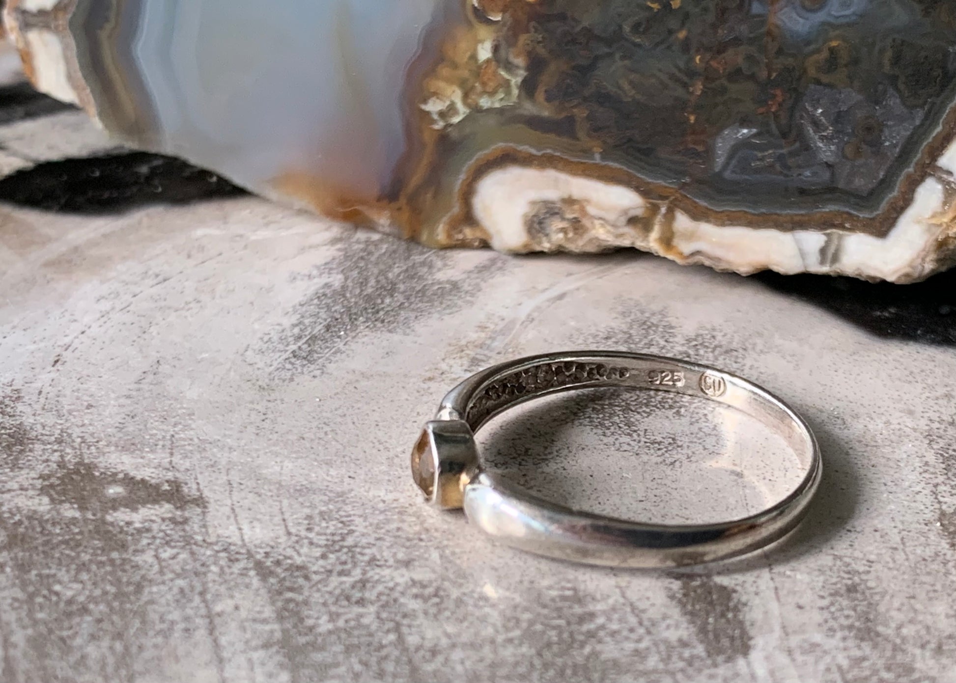Love the delicate setting and shine in this citrine and sterling silver ring. Citrine is a member of the quartz family. Just another beautiful crystal forged by heat and pressure over potentially* millions of years, encased in vast sections of the earth's crust.