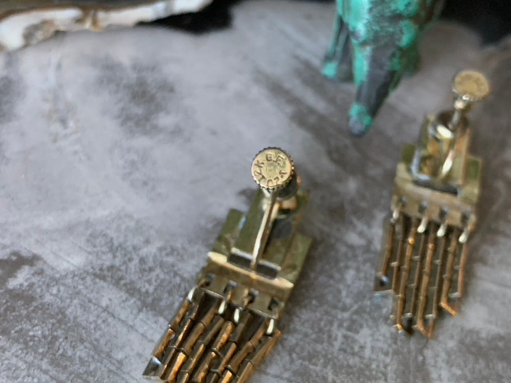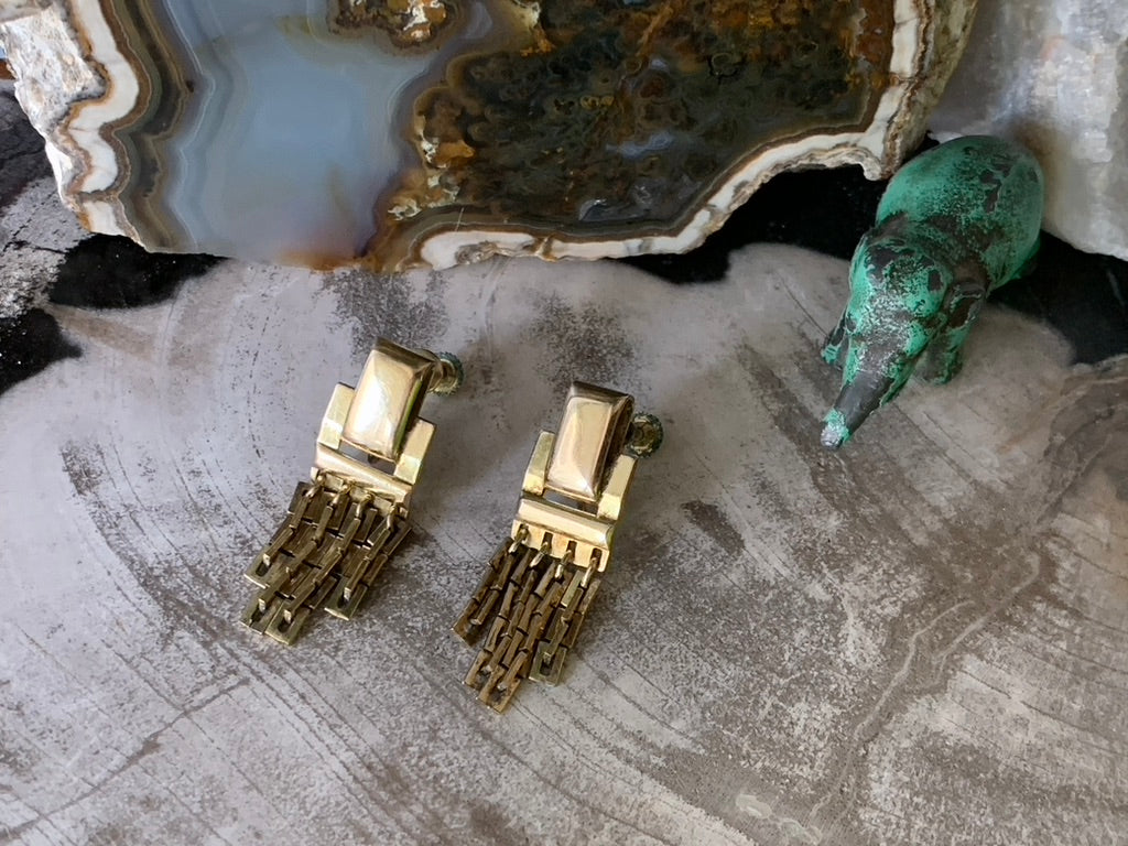 A very unusual find. Love the clean lines and tentacle-like chains adorning these gold-filled (12k) screw-back earrings.