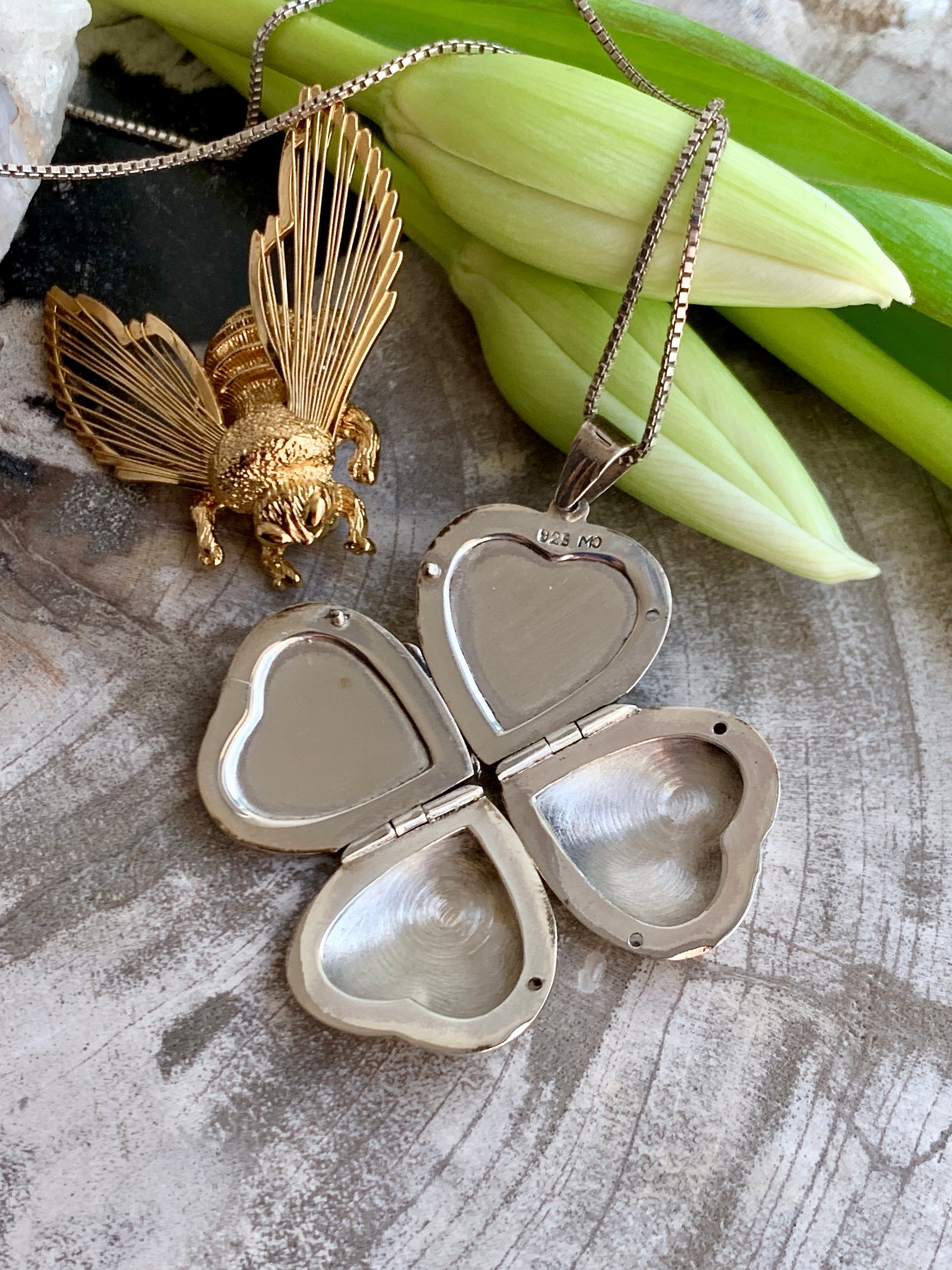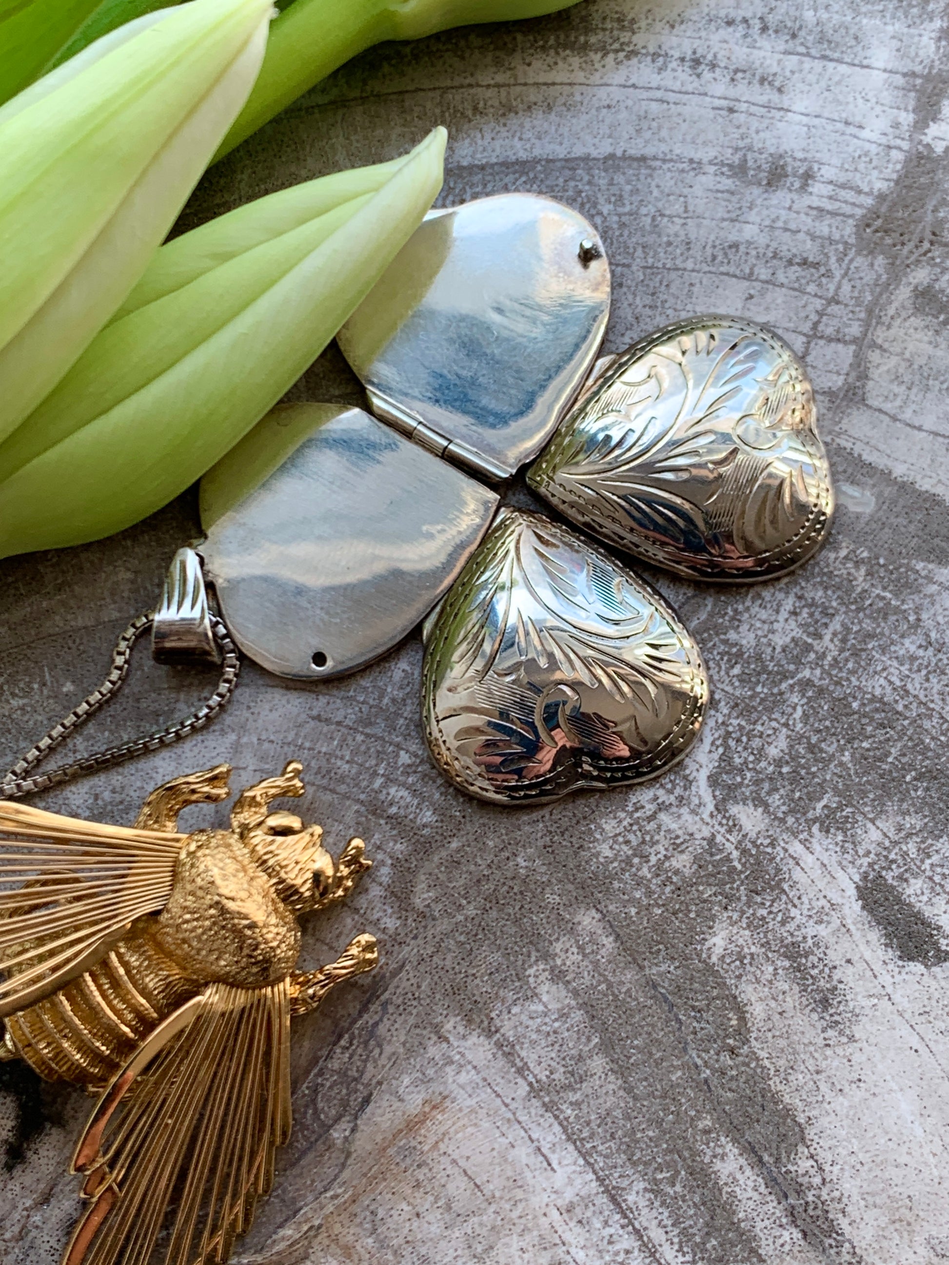Sterling silver locket. Clover-like shape allows room for two, or plenty of one, or any variation thereof.