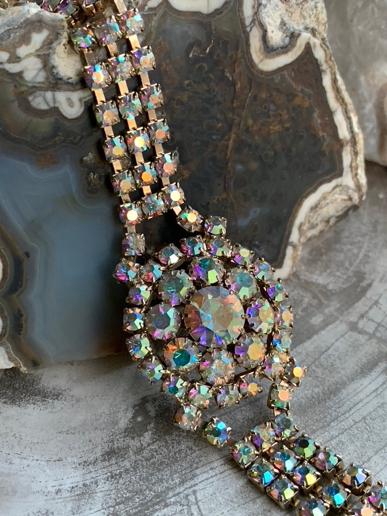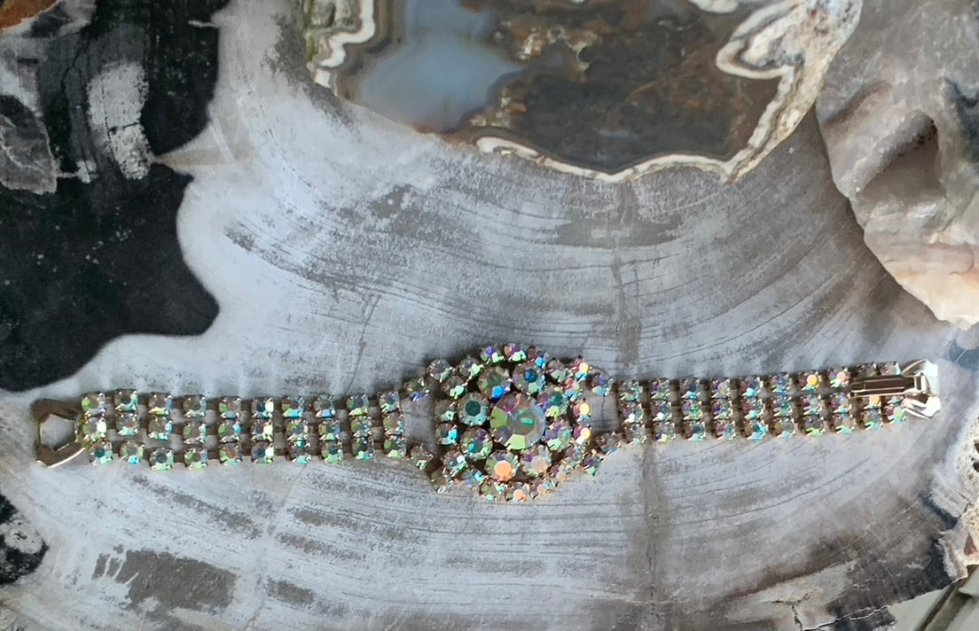 Another beauty from a batch of Austrian crystal jewelry and one that glows in the dark. In near perfect vintage condition. Front and back. Really, I'm not sure anybody wore this one.